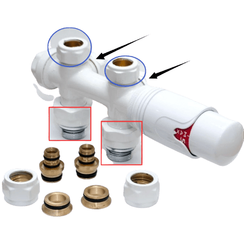 15mm connection for copper pipe and 16mm connection for PEX pipe