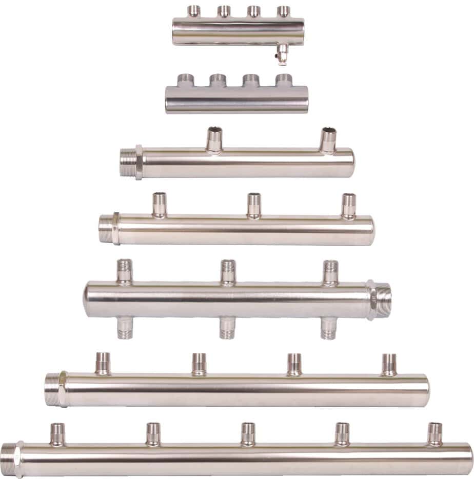 The multi-outlet distribution manifold is an important part at the end of a circulating water system. It is used to send water accurately to different pipes and collect water returning from the system. It can also adjust the total water flow flexibly according to the needs of different heating products, helping the system work efficiently and keeping water evenly balanced in all branches.