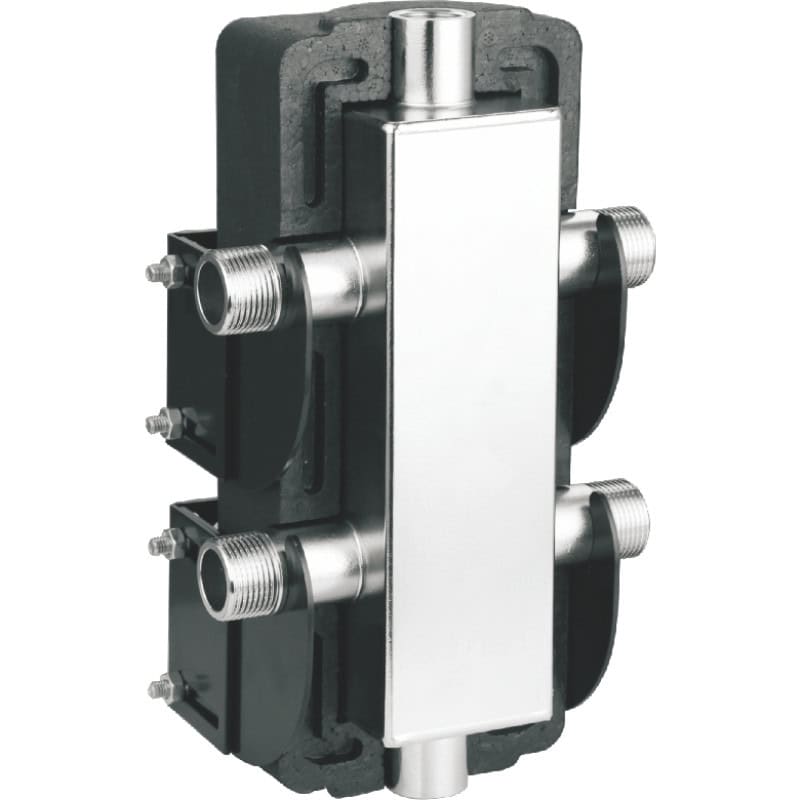 The factory-made shunt can also integrate flow sensors, temperature control valves, and other modules when needed. Interfaces follow common standards such as BSPP and NPT, so the unit can connect directly to building management systems for accurate hydraulic control.